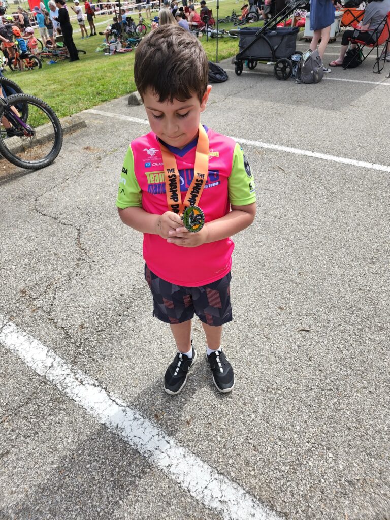 Jacob Schira from Team Mandalore finished the race and wears his medal proudly.