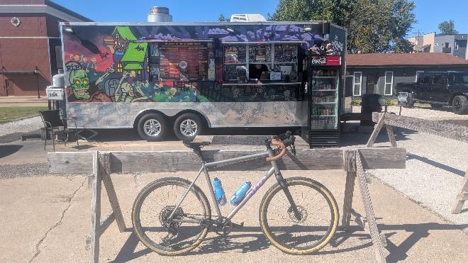 We roll up to Crepes Paulette in Bentonville and quickly find out that it’s an hour long wait to eat. Not to Fear Joe, the local foodie is here! He said let’s go to the Hub. Sounds good to me so we get back on our bikes and make it across the street. LITERALLY. What is this amazing smelling goodness of a food trailer?