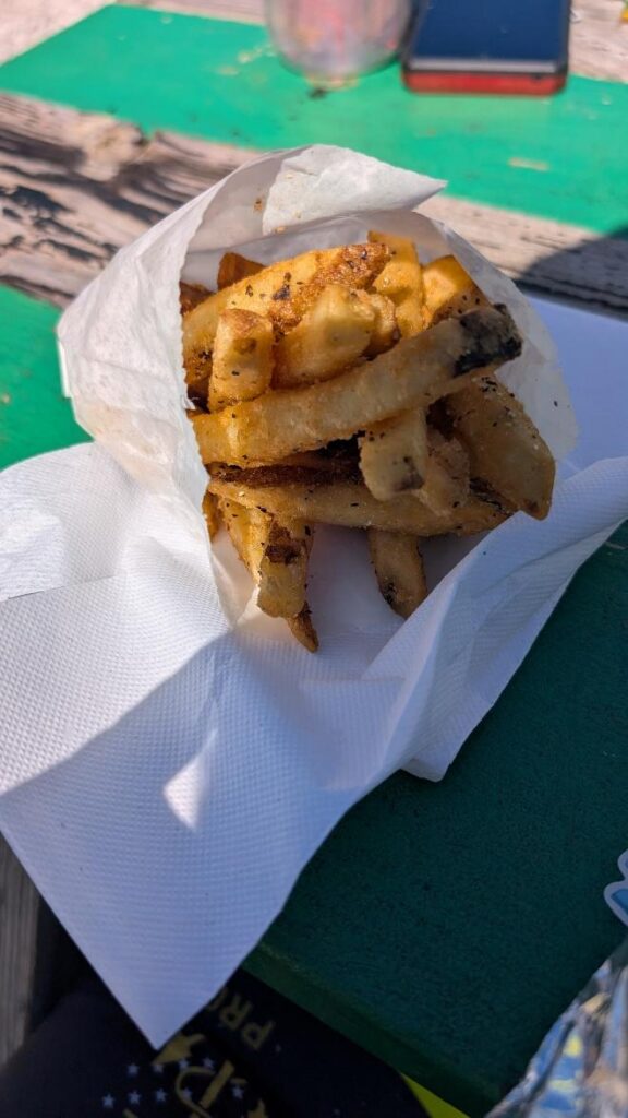 The Witching Hour the rescue. Joe said he heard it was good and always wanted to try it and asked if it was ok with it? But of course, we are, who doesn’t love a good food trailer. Fresh air, ambient sound, music from speakers, stickers, (I got the chest burster sticker) and picnic tables!! If you haven’t heard the banger ROCK AND ROLL MCDONALDS. I highly encourage a google/YouTube search for a listen or ten.