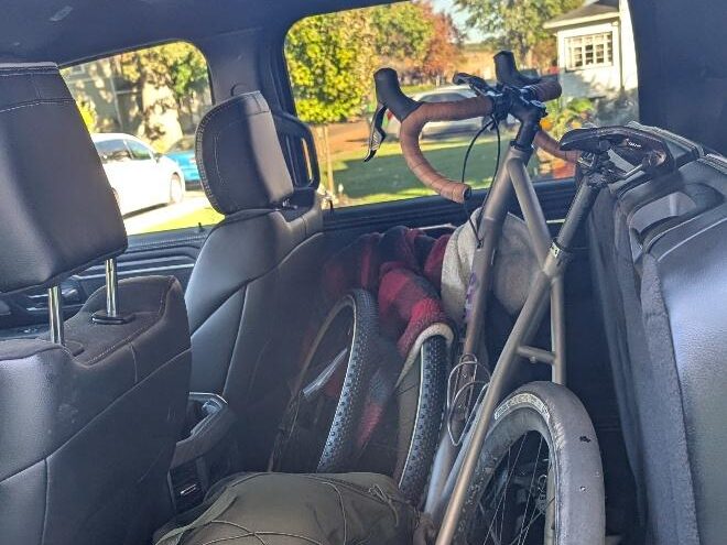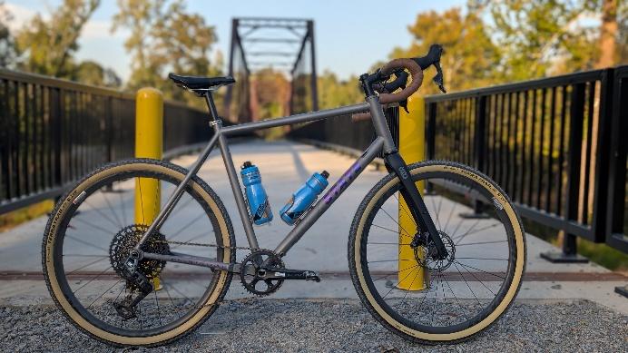 This year I am riding on the 2024 State Bicycle Co. Titanium all-road. I am running a Sramano mash up with a Shimano GRX810 40T front chainring. SRAM 10-52 rear cassette and AXS GX T-type rear derailleur. Reynold Black label 650B carbon wheels and the Continental Terra trail 650-47s. Who doesn’t love riding on pillows?