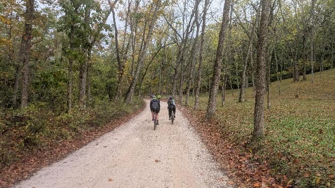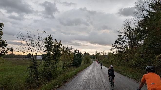 After a neutral start of almost 5 miles, we hit the gravel with a short steep climb which quickly began distancing the riders. The rain arrived after this climb, fortunately a nice warm steady shower without significant wind or lightshows. This liquid sunshine continued for the better half of 15-20 miles. The rain aided the usual dust cloud, which is Arkansas gravel this time of year, allowing for easy riding, tire grip, comfortable temperatures, and all-around fun. We kept a number of neighbors during the entire course, never fully alone nor crowded. The participants, including the elites, were always friendly, encouraging, helpful, and a blast to hang around as expected with gravel riders.